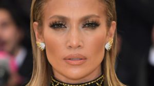 Un look que JLo ha completado con unas sandalias negras de plataforma, clutchjoya también en color negro y pendientes ear cuff de Tiffany.
