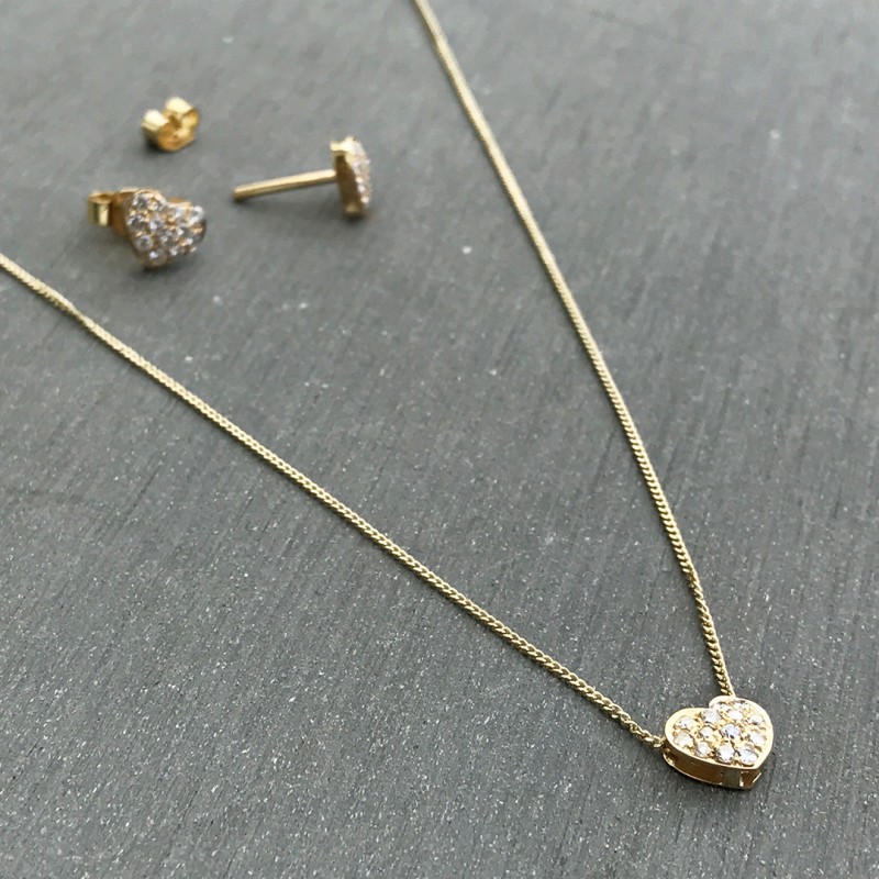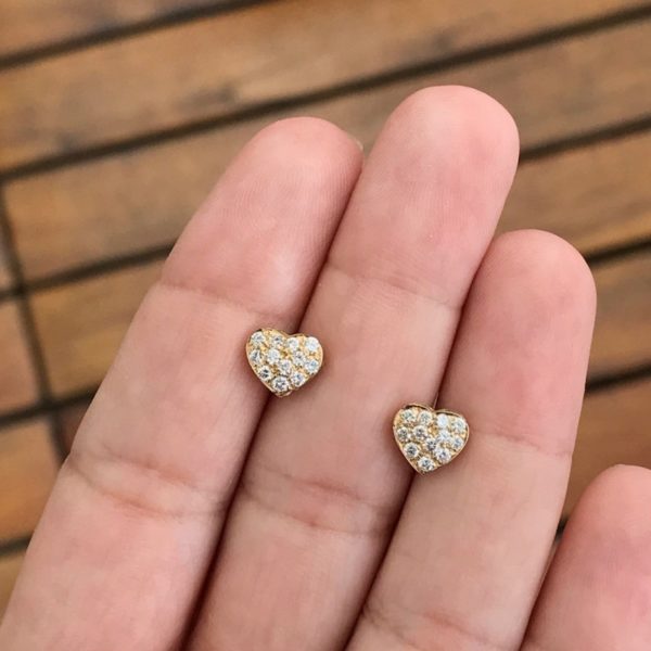 Heart Shape Earrings + White Diamonds + 18K Gold.