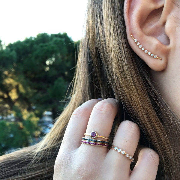 18K Gold Earrings + 8 White Diamonds Round Cut. Available in Gold and White.